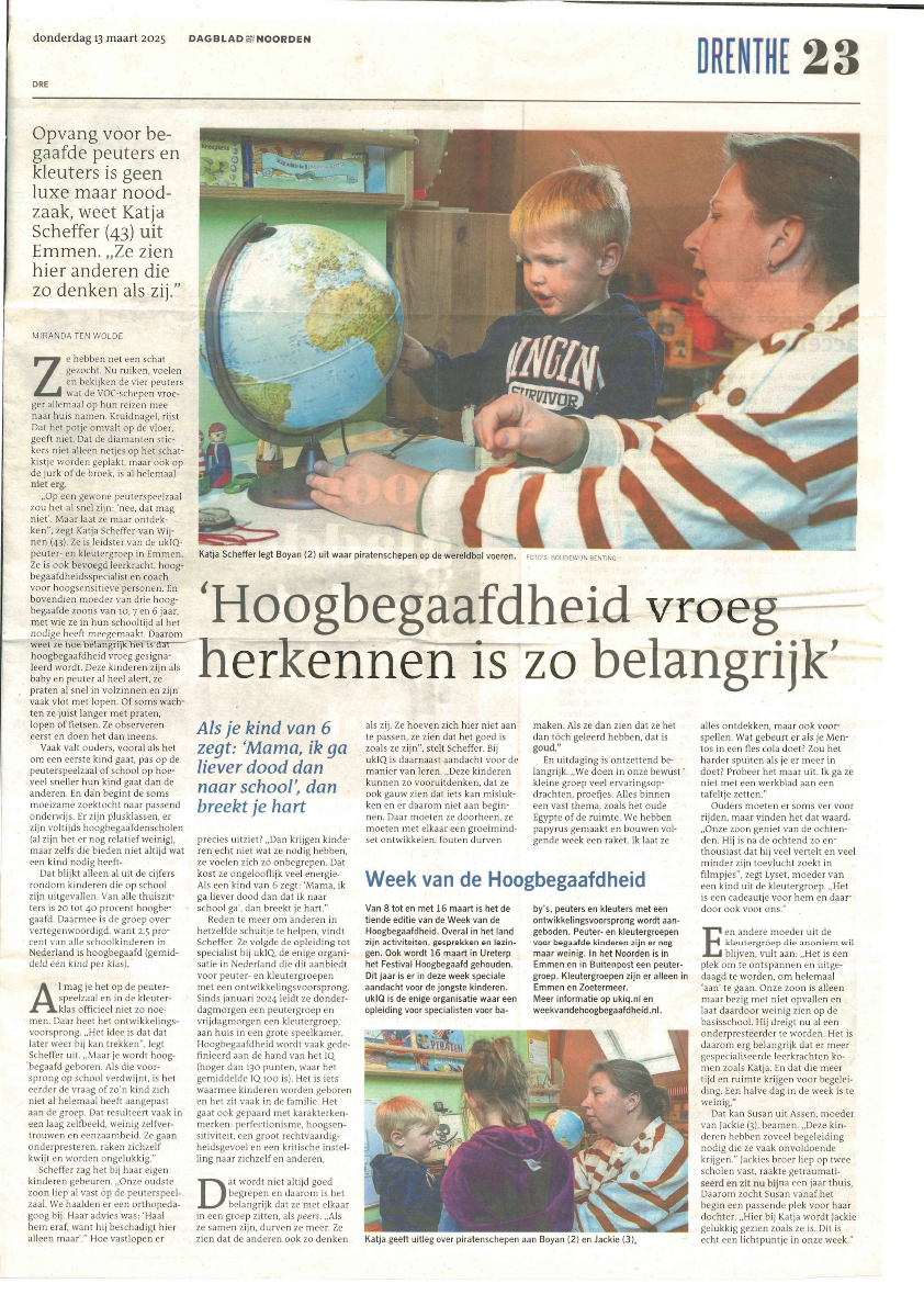 - UKIQ-specialist (gericht op peuters/kleuters met een ontwikkelingsvoorsprong)